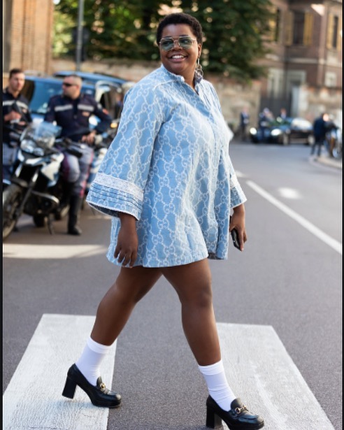 "I’ve fielded some serious volatility over the last couple of days but nothing has been quite as bad as what people have said about my body and the way I look. The fat phobia JUMPED out. Yes, I am fat. No, I’m not humiliated to show up as my authentic self in the world. I love this photo from the Balenciaga show because it captures something I’ve worked hard to achieve (and sometimes still fail at doing) loving and feeling myself, and supporting designers that don’t make bigger bodies bend to them. Thank you @chopovalowena for making fashion that serves so many different body types—I looked and felt amazing in this dress. Thank you @mrstreetpeeper for capturing the vibes! To my fellow fat sisters and brothers, put that lil dress on, grab your miniskirts: We ride at dawn!